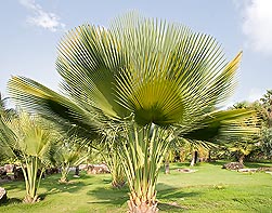The Copernicia Gigas is known for its being a Solitary, large, fan-leafed palm. With a beautiful grayish somewhat smooth trunk to 2 feet thick and leaves a darkish green. Overall height can get up to 45 feet with up to 20 foot spread over many years.